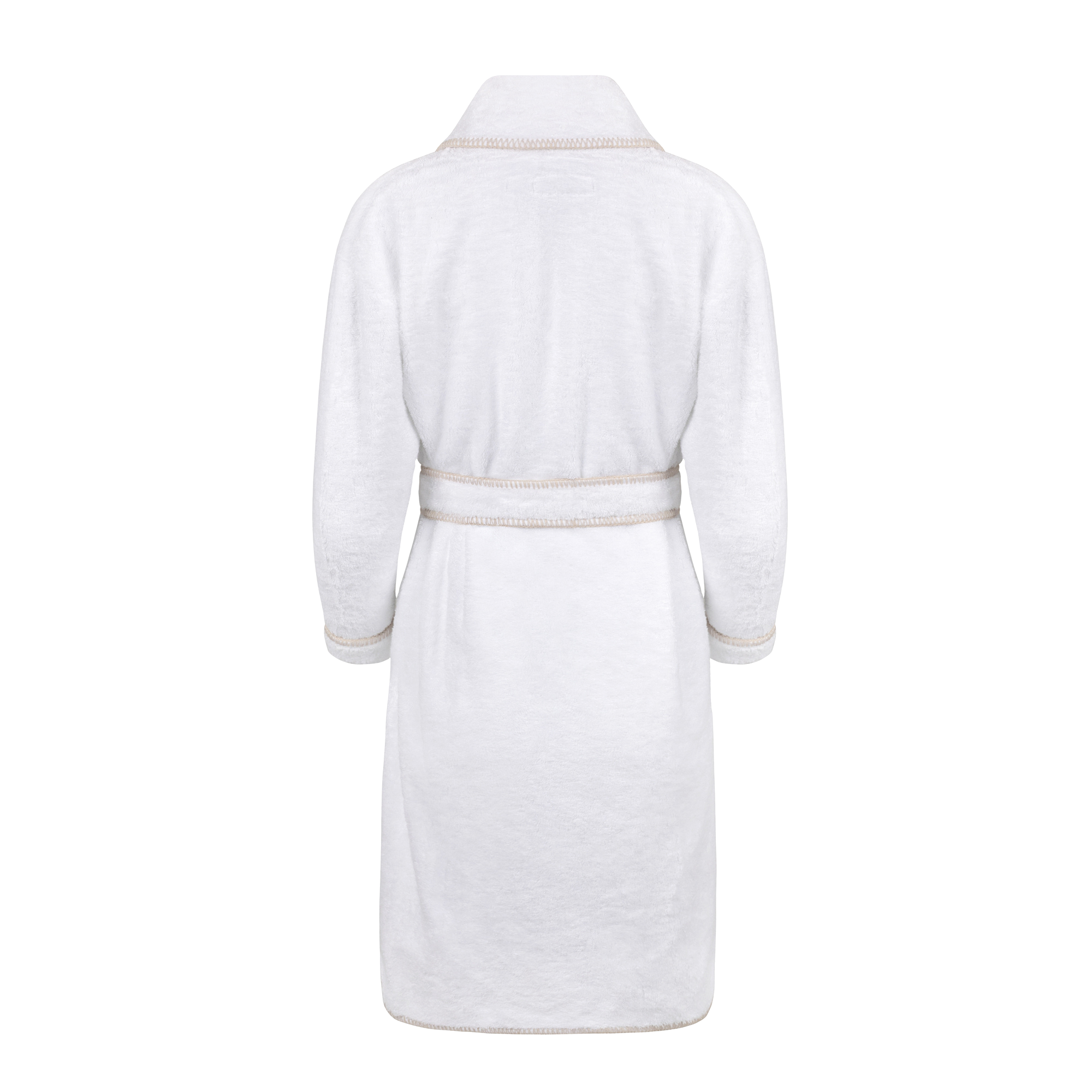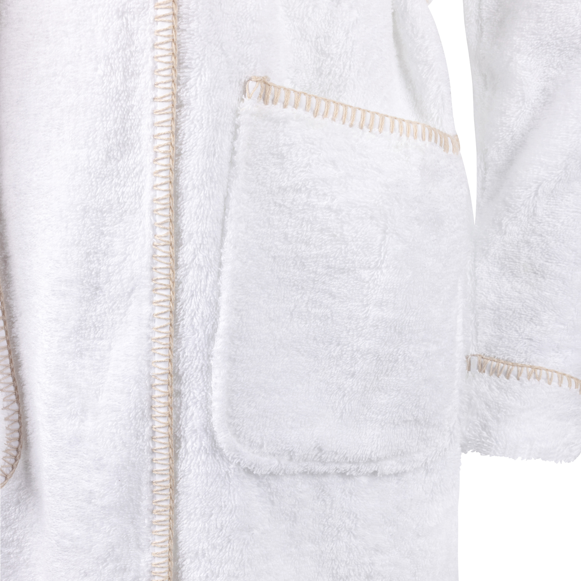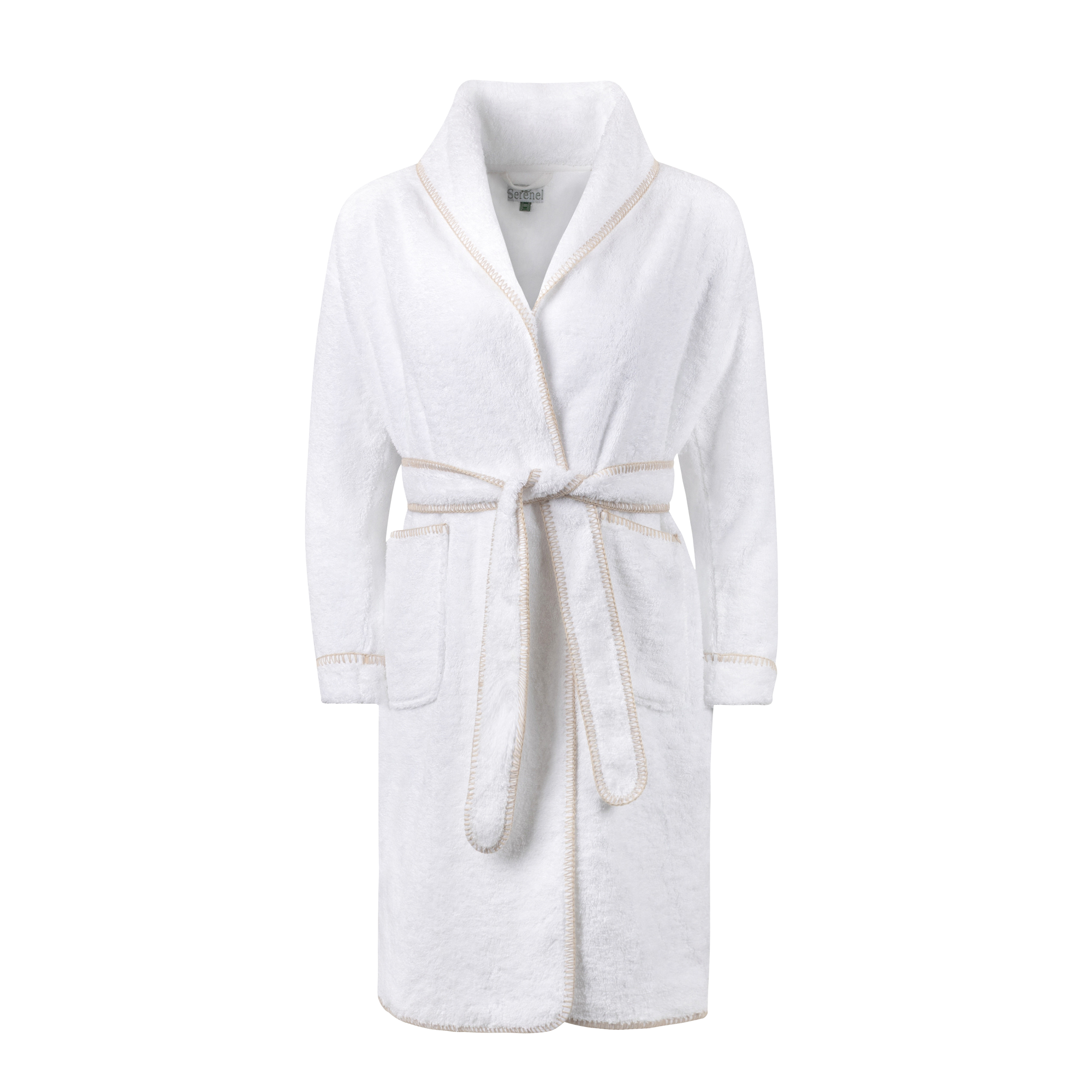 Made from soft, absorbent, 100% cotton, this robe features a soft sand whipstitch trim for a fresh, clean, fully gender-neutral look. Finished with a sewn-on belt and a front pockets, it offers an easy, comfortable fit for everyday wear.